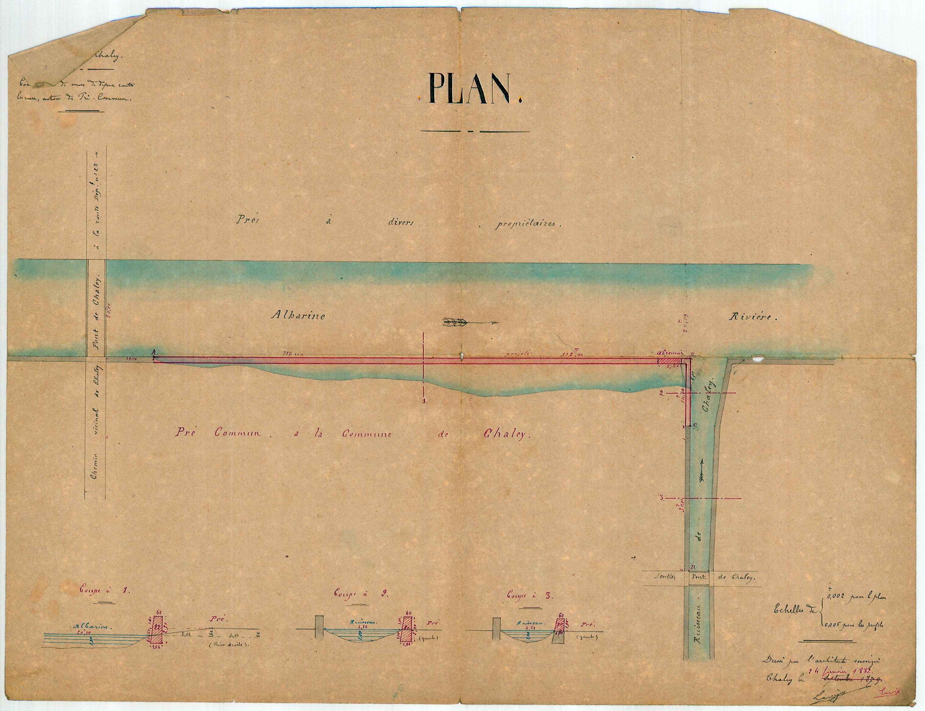 Construction d’un mur de défense sur la rive droite de l’Albarine le long du Pré Commun.