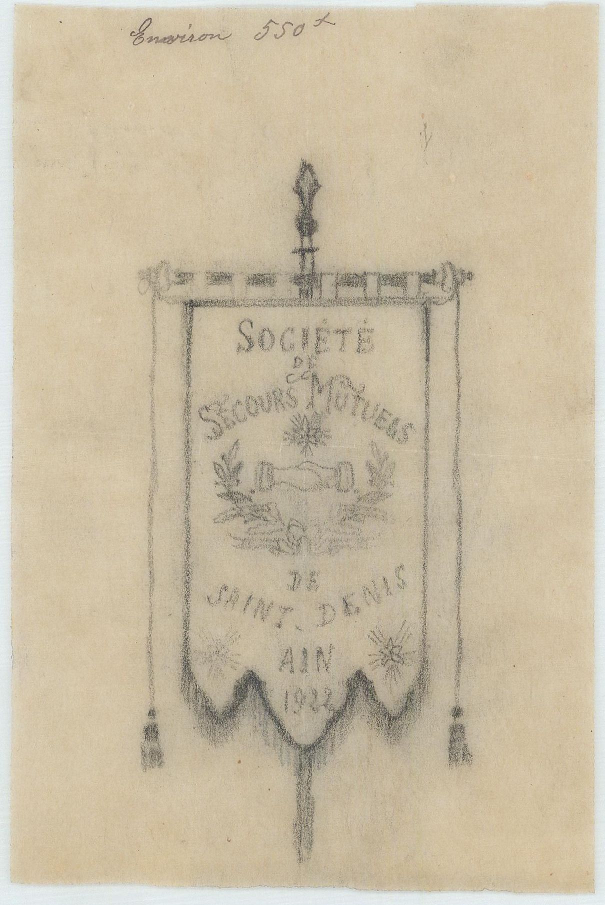 Croquis pour un projet de banderole de la société de secours mutuels n°292 La Patriote, vue 01.