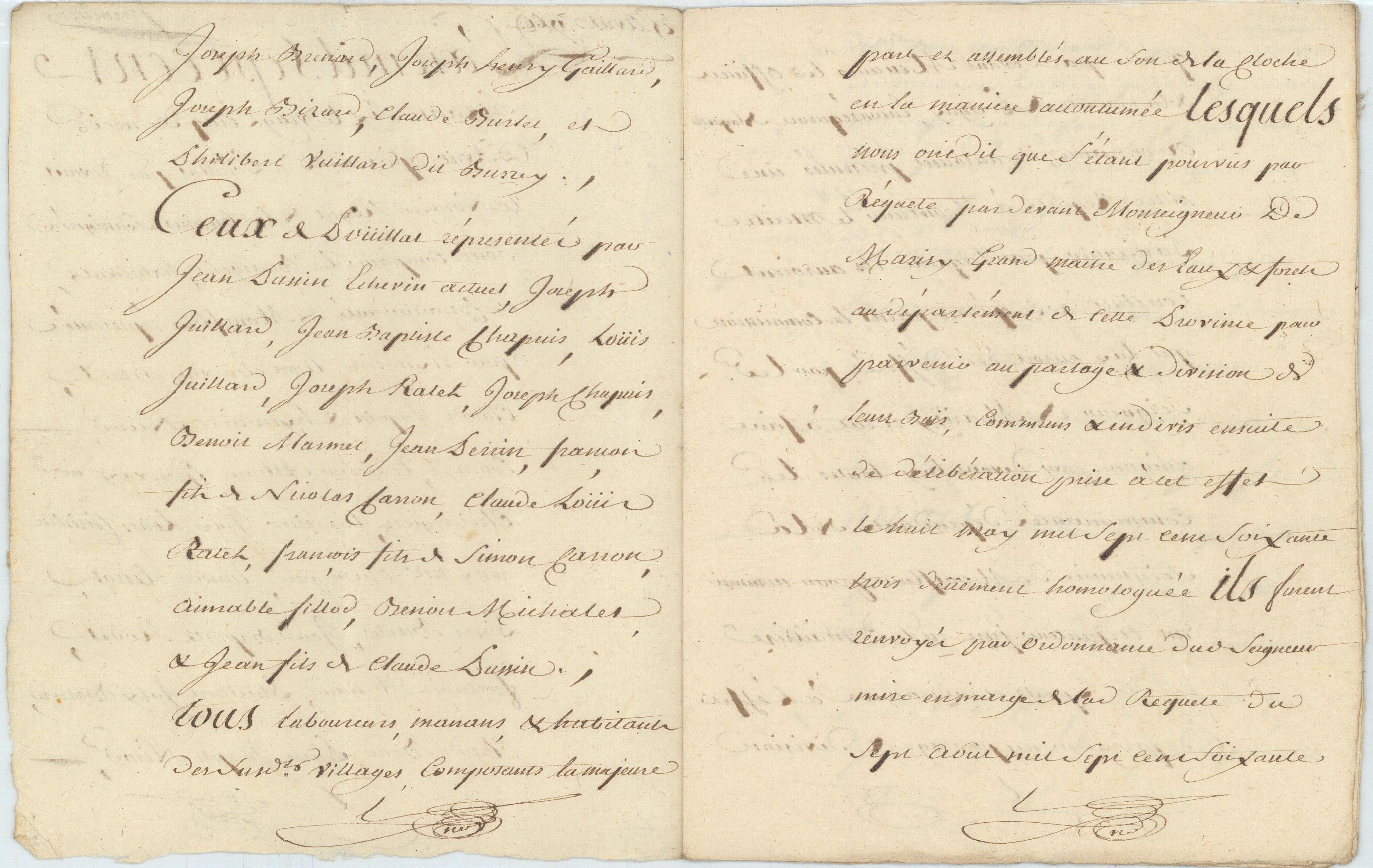 Délibération de la communauté d’habitants de Pouillat sur le partage et division des bois, communs et indivis, vue 02.