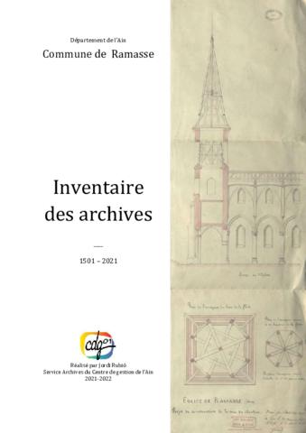 Les archives communales anciennes et modernes sont classées suivant le règlement de 1926. Le fonds ancien regroupe les documents antérieurs à 1790, le fonds moderne -divisé en deux parties- comprend les documents de 1790 à 1982. La première partie concerne le fonds déposé aux Archives départementales de l’Ain et elle s’étale de 1790 à 1959 hormis pour les registres d’état civil, conservés en commune à compter de 1911 et pour les plans et matrices cadastrales de la commune, conservés également à Ramasse. La deuxième partie courre de 1960 à 1982. Cette division s’explique par un dépôt ancien aux Archives départementales de l’Ain (de 1984 ou antérieur) d’une partie importante des archives anciennes et modernes de la commune que la municipalité a souhaité conserver tout en réalisant des modifications au dépôt pour que les archives postérieures à 1959 retournent à Ramasse et certaines d’antérieures à cette date rejoignent le dépôt.