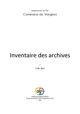 BERARD Ségolène, Commune de Vongnes. Inventaire des archives (1724-2017), Péronnas : CDG 01, 2017