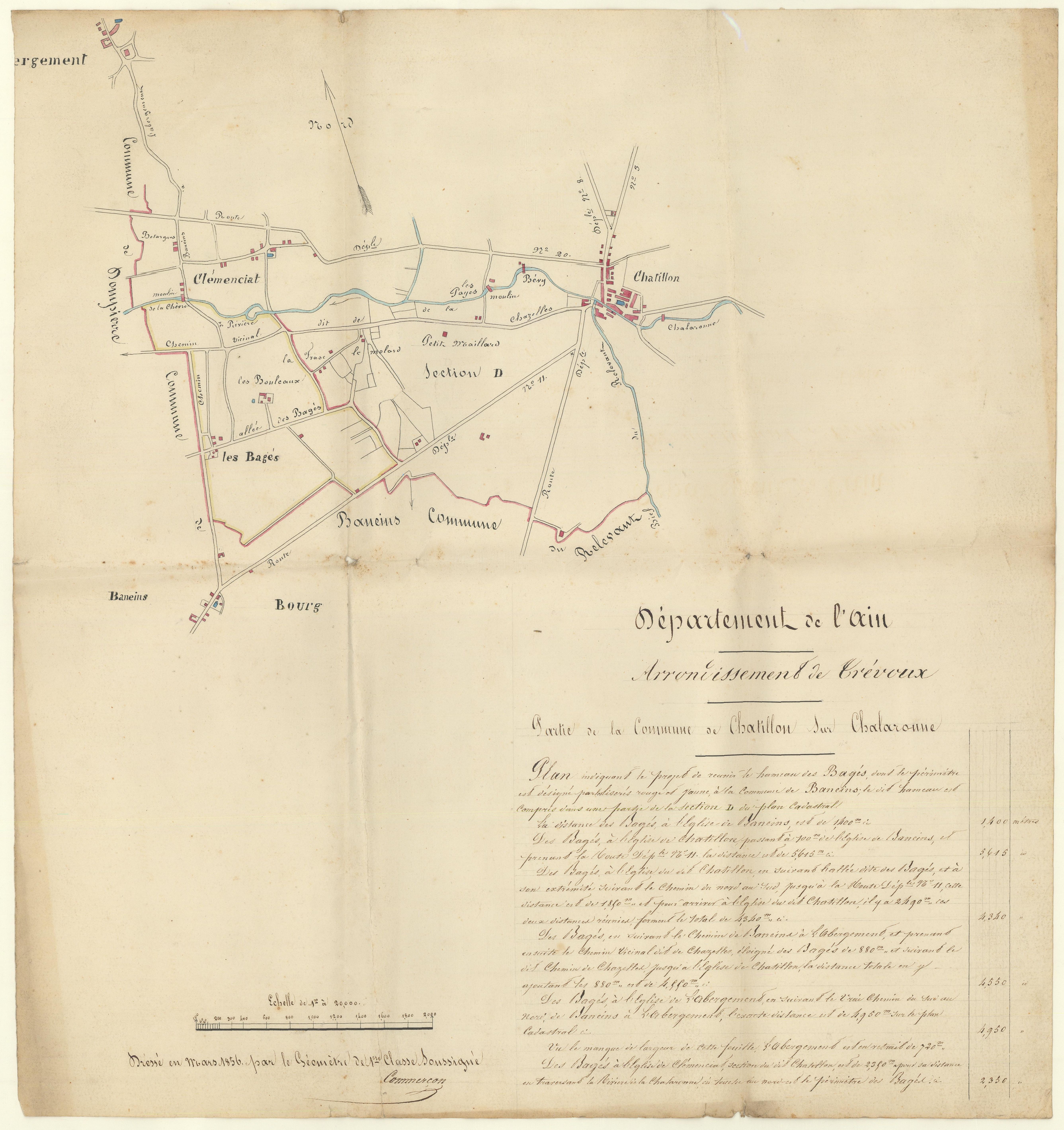 Plan indiquant le projet de réunir le hameau des Bâgés à la commune de Baneins, vue 01.