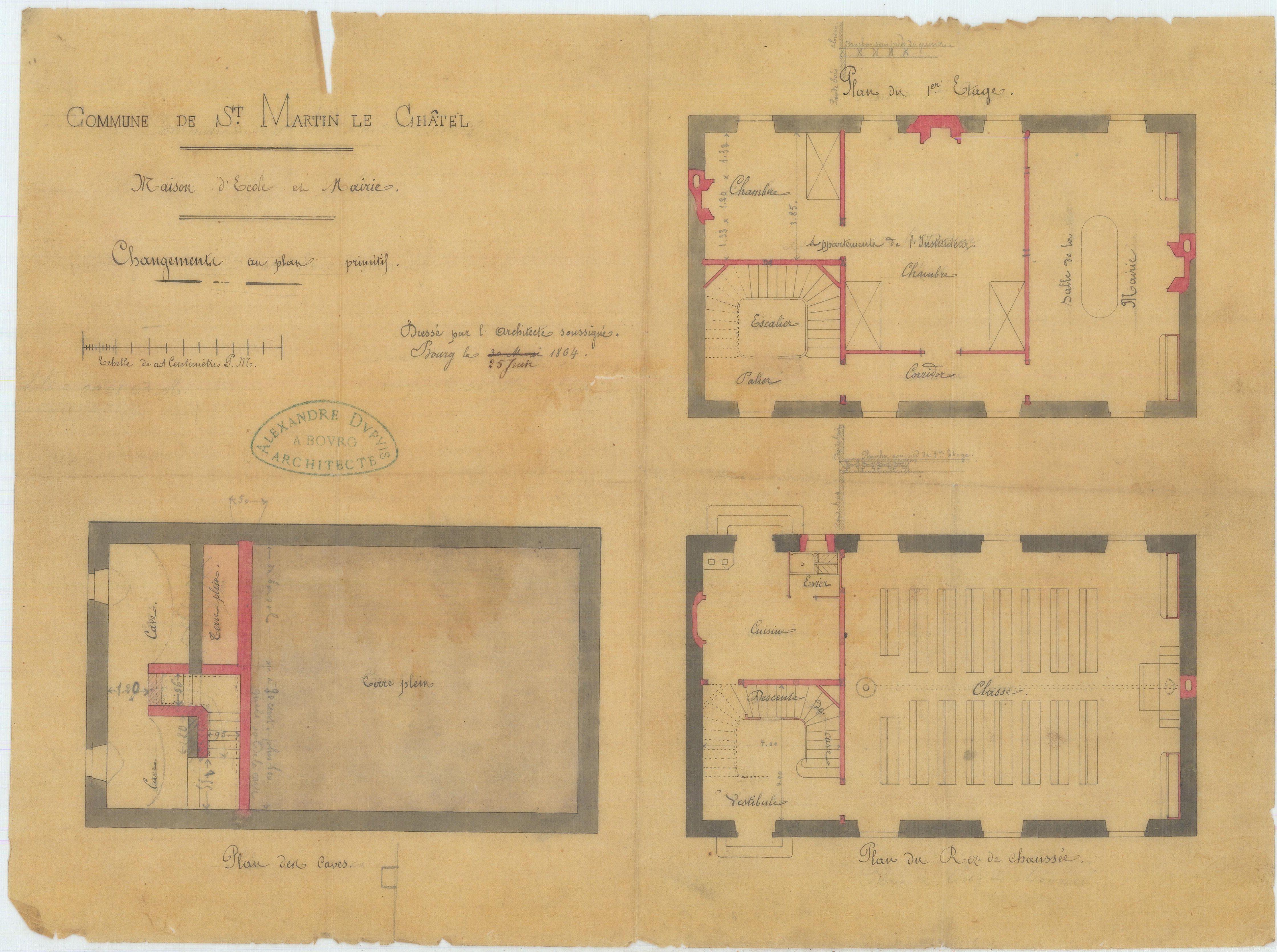 Plan modifié pour la construction de la maison d’école, vue 01.