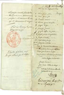 Bordereau récapitulatif communal de recensement des hommes de 16 à 60 ans non présents sous les d...