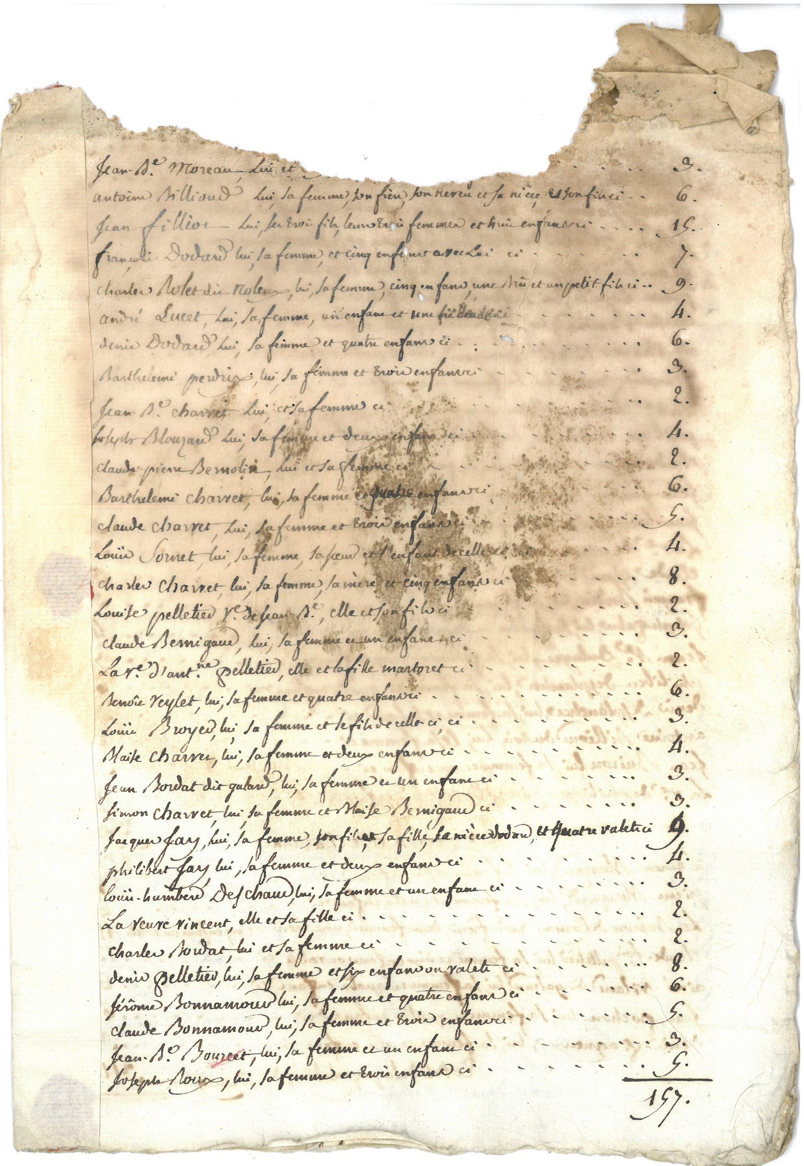 Liste nominative des habitants par hameau, vue 01.