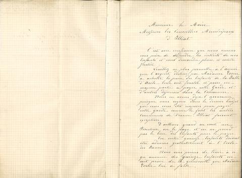 Pétition des pères de famille adressée à la municipalité relative à l'ouverture d'une classe d'asile grâce à la fondation Lorin, vue 02.