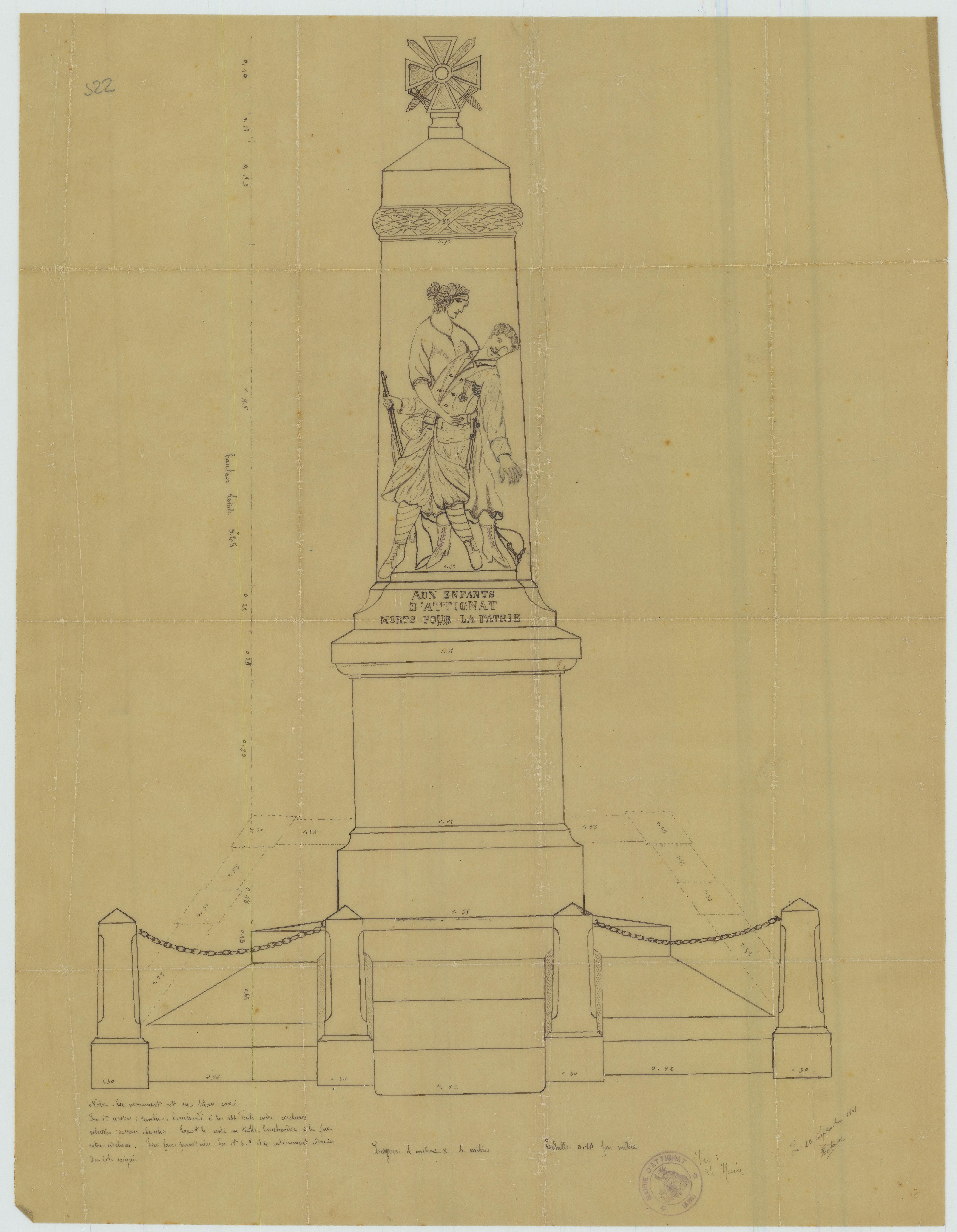 Plan pour la construction du monument aux morts, vue 01.