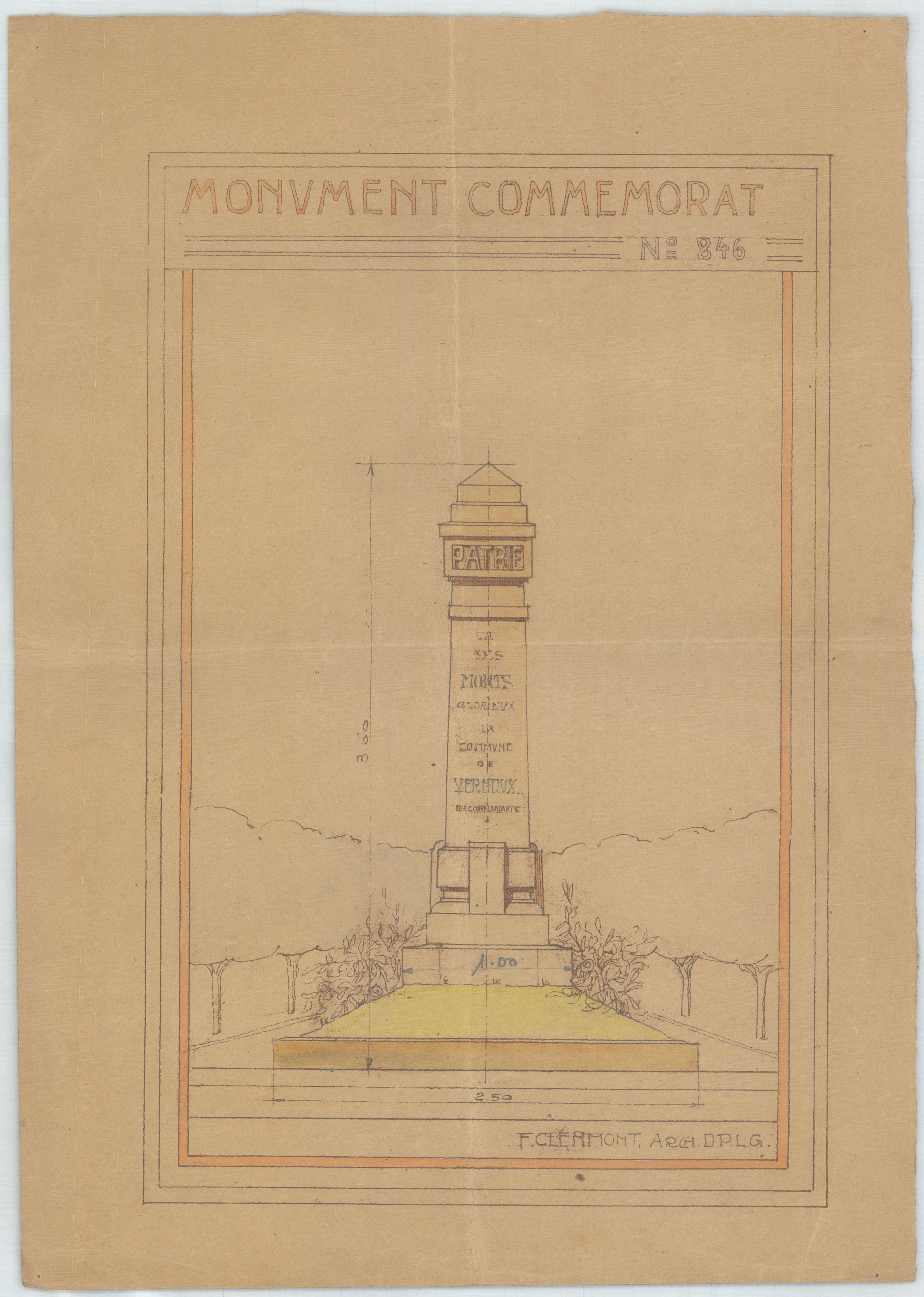 Plan pour la construction du monument aux morts, vue 02.