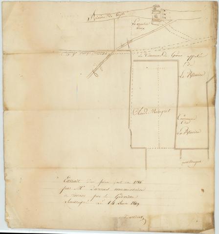 Plan pour le litige contre les héritiers de Jean Philibert Antoine Tardy, ce dernier ayant usurpé le communal dit de la Rivoire, vue 01.