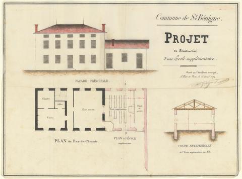 Plan pour un projet de construction d'une école supplémentaire, vue 01.