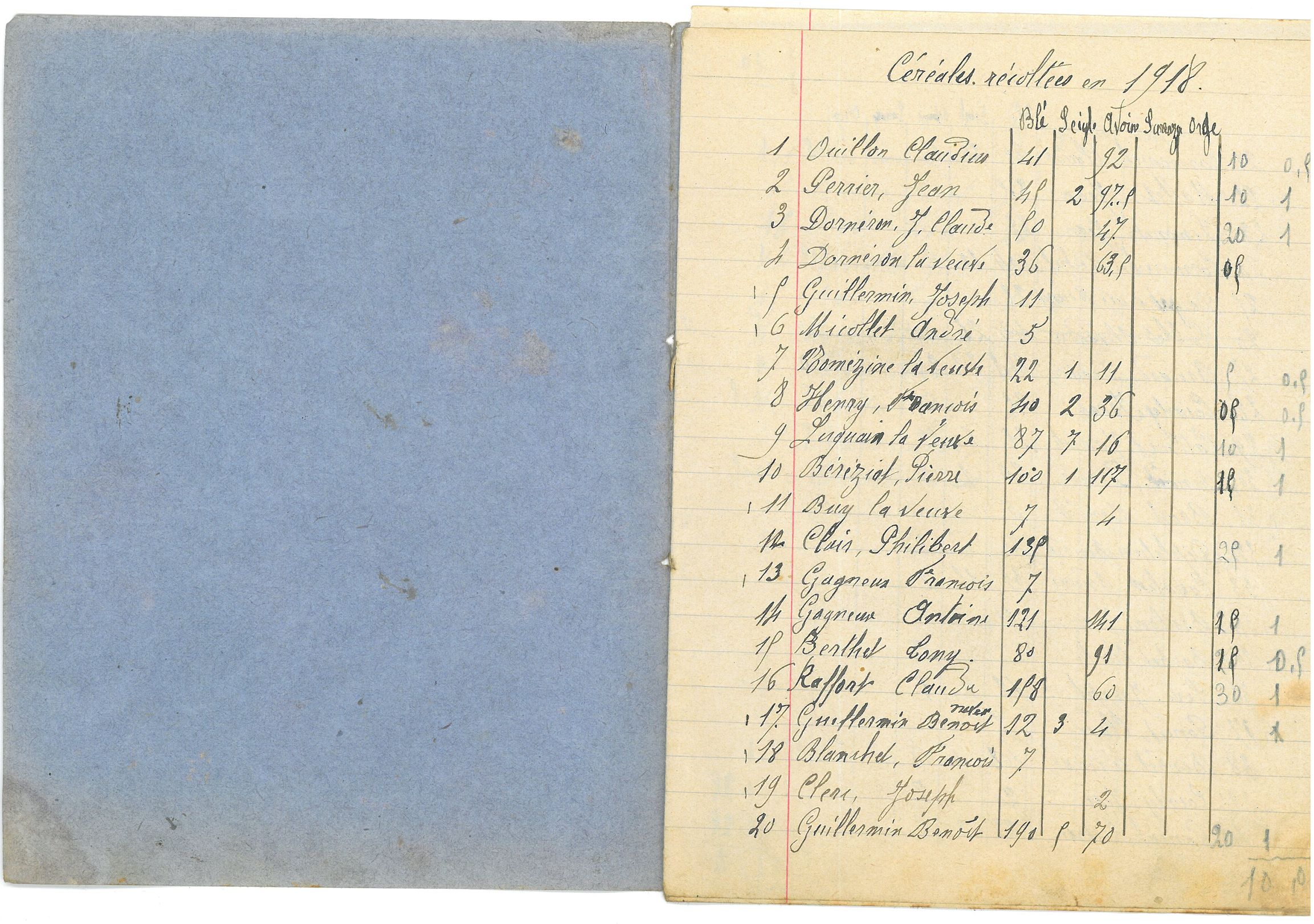 Cahier donnant des renseignements sur les réquisitions et le ravitaillement militaires, l’état des récoltes, liste des dons, listes nominatives et faits de guerre.