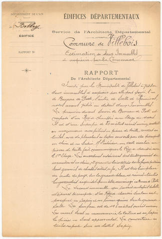 Item 01M005_001 - Rapport de l’architecte départemental pour l’acquisition du bureau de poste, vue 01.