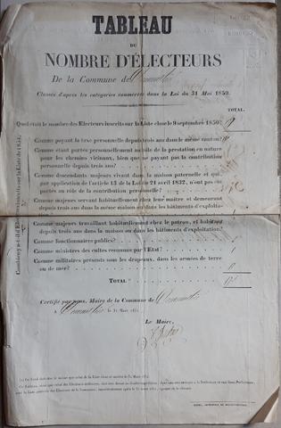 Tableau statistique des catégories d’électeurs en application de la loi du 31 mai 1850.